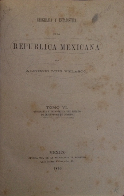 GEOGRAFIA Y ESTADISTICA DE LA REPUBLICA MEXICANA POR ALFONSO LUIS VELASCO. TOMO IV. GEOGRAFIA Y ESTADISTICA DEL ESTADO DE MICHOACAN DE OCAMPO