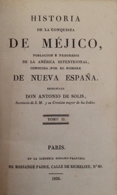 HISTORIA DE LA CONQUISTA DE MEJICO, POBLACION Y PROGRESOS DE LA AMERICA SETENTRIONAL, CONOCIDA POR EL NOMBRE DE NUEVA ESPAÑA. ESCRIBIALA DON ANTONIO DE SOLIS, SECRETARIO DE S. M. Y SU CRONISTA MAYOR DE LAS INDIAS. TOMO II