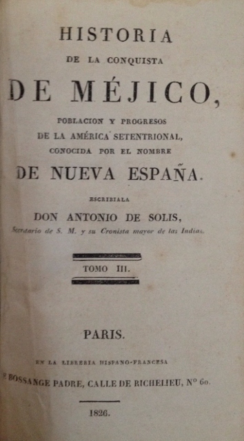 HISTORIA DE LA CONQUISTA DE MEJICO, POBLACION Y PROGRESOS DE LA AMERICA SETENTRIONAL, CONOCIDA POR EL NOMBRE DE NUEVA ESPAÑA. ESCRIBIALA DON ANTONIO DE SOLIS, SECRETARIO DE S. M. Y SU CRONISTA MAYOR DE LAS INDIAS. TOMO III