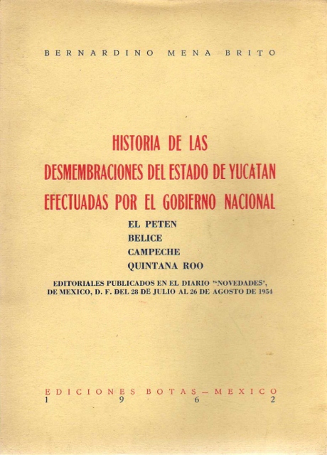 HISTORIA DE LAS DESMEMBRACIONES DEL ESTADO DE YUCATAN EFECTUADAS POR EL GOBIERNO NACIONAL. EL PETEN, BELIC,E CAMPECHE, QUINTANA ROO