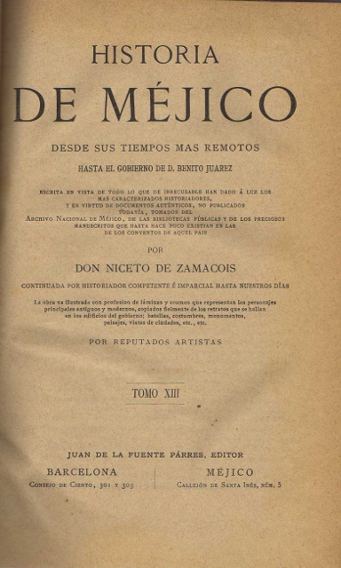 HISTORIA DE MEXICO DESDE SUS TIEMPOS MAS REMOTOS HASTA EL GOBIERNO DE D. BENITO JUAREZ. TOMO XIII