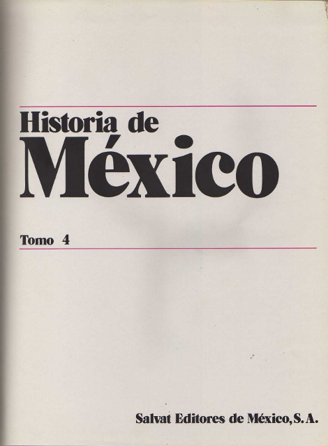 AUTOR: S. A.EDITOR: SALVAT EDITORES DE MEXICOEDICIÓN: S. E.AÑO: 1974LUGAR: EDO. DE MEXICOPAÍS: MEXICOPÁGINAS: 298 PP.TEMARIO: HISTORIA GENERAL DE MEXICOID: 4145