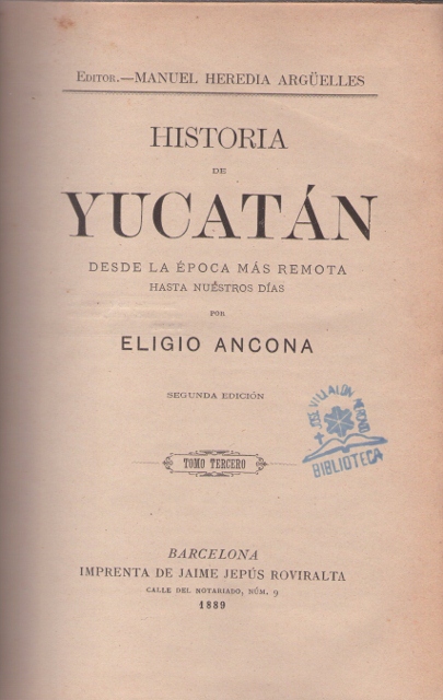 HISTORIA DE YUCATAN. DESDE LA EPOCA MAS REMOTA HASTA NUESTROS DIAS. TOMO TERCERO
