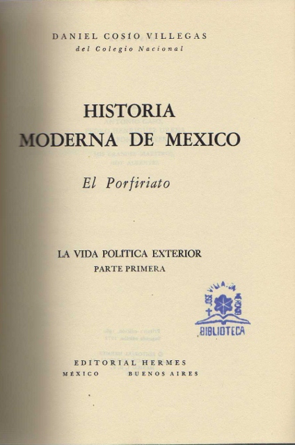 HISTORIA MODERNA DE MEXICO. EL PORFIRIATO. LA VIDA POLITICA EXTERIOR. PARTE PRIMERA