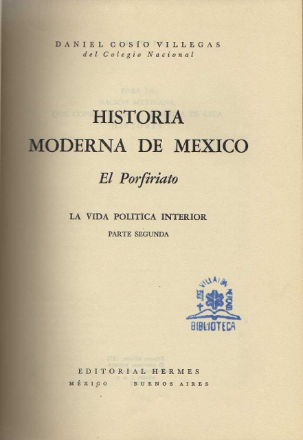 HISTORIA MODERNA DE MEXICO. EL PORFIRIATO. LA VIDA POLITICA INTERIOR. PARTE SEGUNDA