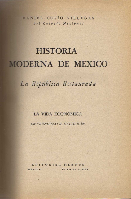 HISTORIA MODERNA DE MEXICO. LA REPUBLICA RESTAURADA. LA VIDA ECONOMICA
