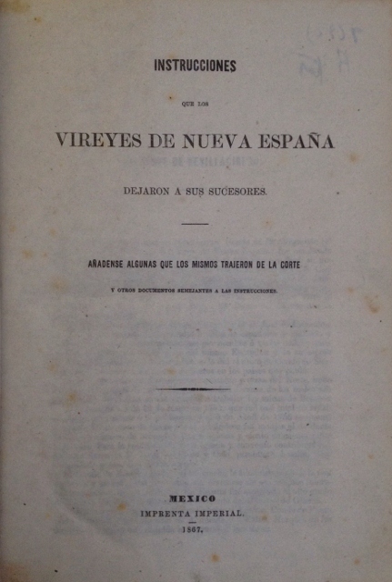 INSTRUCCIONES QUE LOS VIREYES DE NUEVA ESPAÑA DEJARON A SUS SUCESORES. AÑADENSE ALGUNAS QUE LOS MISMOS TRAJERON DE LA CORTE Y OTROS DOCUMENTOS SEMEJANTES A LAS INSTRUCCIONES