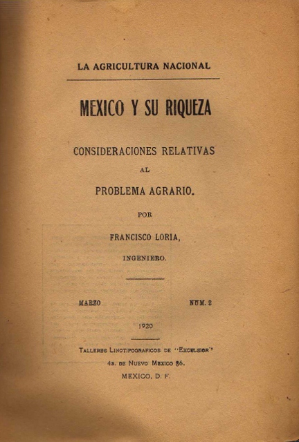 LA AGRICULTURA NACIONAL. MEXICO Y SU RIQUEZA. CONSIDERACIONES RELATIVAS AL PROBLEMA AGRARIO. MARZO. NUM 2