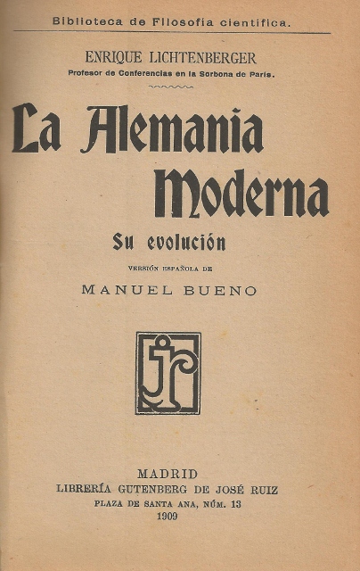 AUTOR: LCHTENBERGER (ENRIQUE)EDITOR: LIBRERIA GUTENBERG DE JOSE RUIZEDICIÓN: S. E.AÑO: 1909LUGAR: MADRIDPAÍS: S. P.PÁGINAS: 411 PP.TEMARIO: HISTORIA MUNDIALID: 4402.01