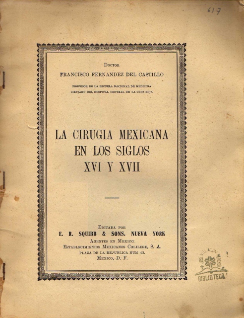 AUTOR: FERNANDEZ DEL CASTILLO (FRANCISCO)EDITOR: E. R. SQUIBB & SONSEDICIÓN: S. E.AÑO: 1936LUGAR: MEXICO D. F.PAÍS: MEXICOPÁGINAS: 43 PP.TEMARIO: MEDICINAID: 2558