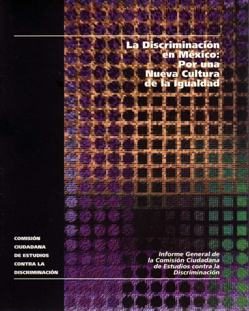 AUTOR: S. A.EDITOR: COMISION CIUDADANA DE ESTUDIOS CONTRA LA DISCRIMINACIONEDICIÓN: S. E.AÑO: 2001LUGAR: MEXICO D. F.PAÍS: MEXICOPÁGINAS: 271 PP.TEMARIO: MUJERESID: 2037