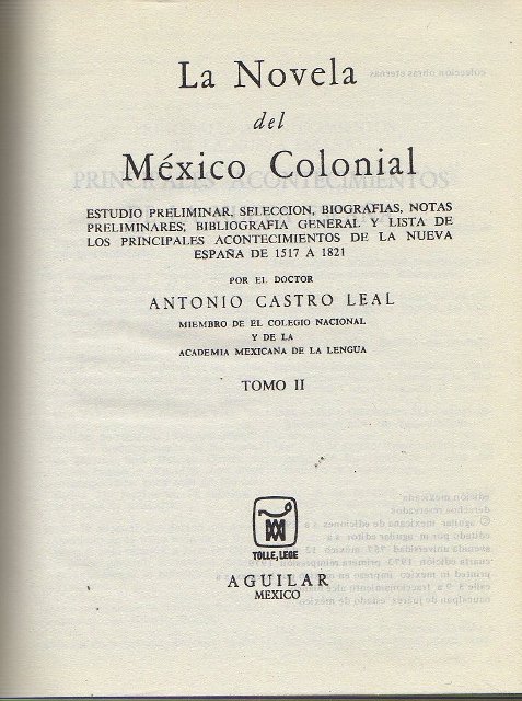 AUTOR: CASTRO LEAL (ANTONIO)EDITOR: AGUILAREDICIÓN: PRIMERA REIMPRESION DE LA CUARTA EDICIONAÑO: 1979LUGAR: MEXICO D. F.PAÍS: MEXICOPÁGINAS: 1107 PP.TEMARIO: LITERATURA MEXICOID: 2669