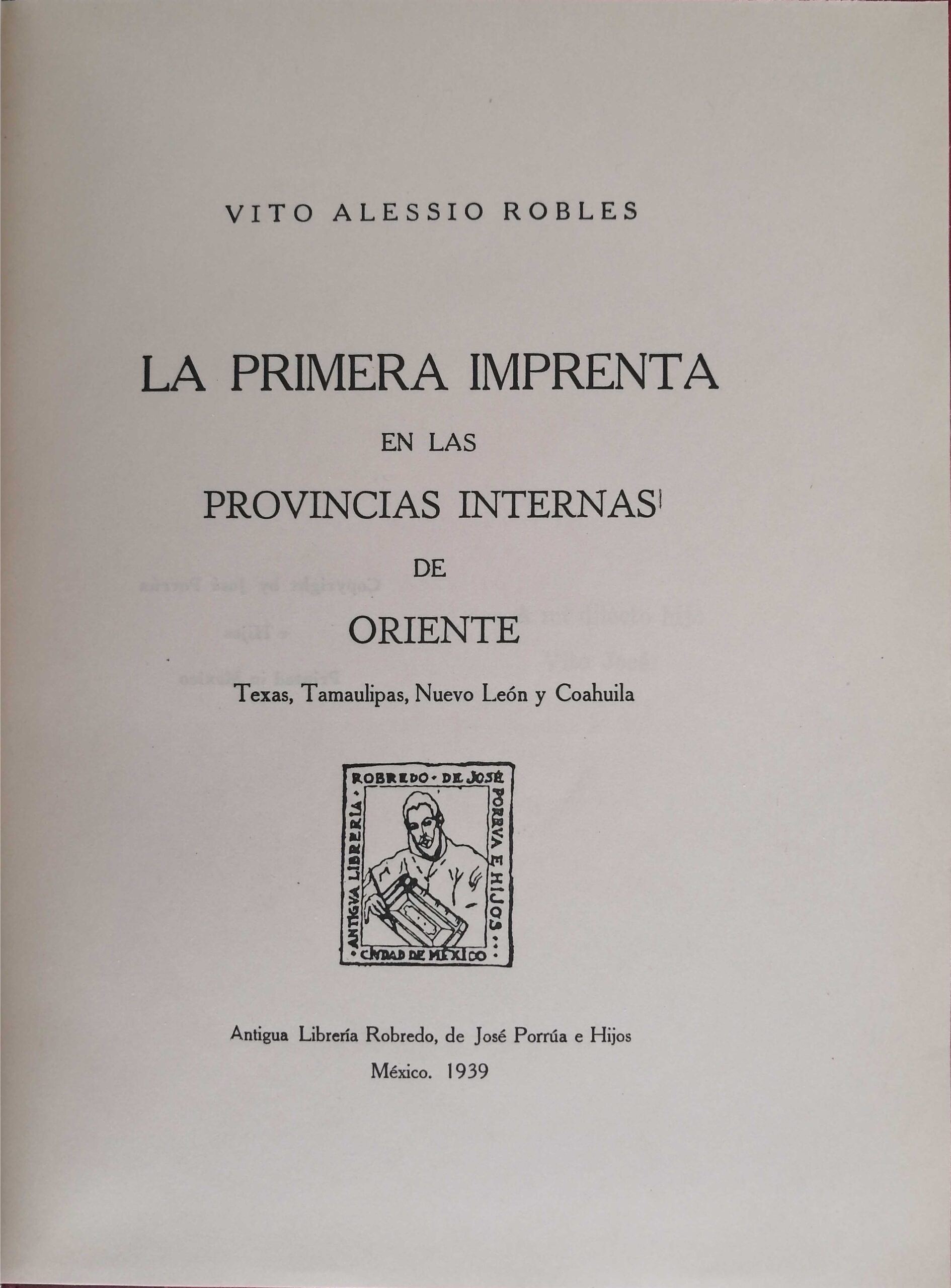 LA PRIMER IMPRENTA EN LAS PROVINCIAS INTERNAS DE ORIENTE. TEXAS, TAMAULIPAS, NUEVO LEON, COAHUILA