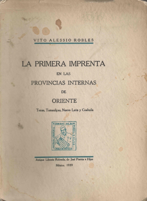 LA PRIMERA IMPRENTA EN LAS PROVINCIAS INTERNAS DE ORIENTE. TEXAS, TAMAULIPAS, NUEVO LEON Y COAHUILA