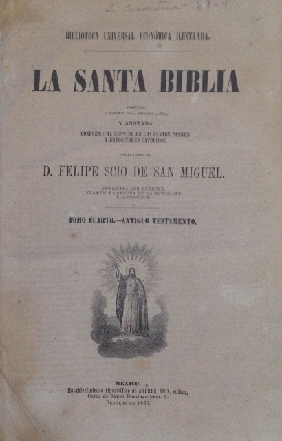 LA SANTA BIBLIA. TRADUCIDA AL ESPAÑOL DE LA VULGATALATINA, Y ANOTADA CONORME AL SENTIDO DE LOS SANTOS PADRES Y ESPOSITORES CATOLICOS, POR EL ILLMO. SR. D. FELIPE SCIO DE SAN MIGUEL. PUBLICADA CON PARECER EXAMEN Y CENSURA DE LA AUTORIDAD ECLESIASTICA. TOMO CUARTO. ANTIGUO TESTAMENTO