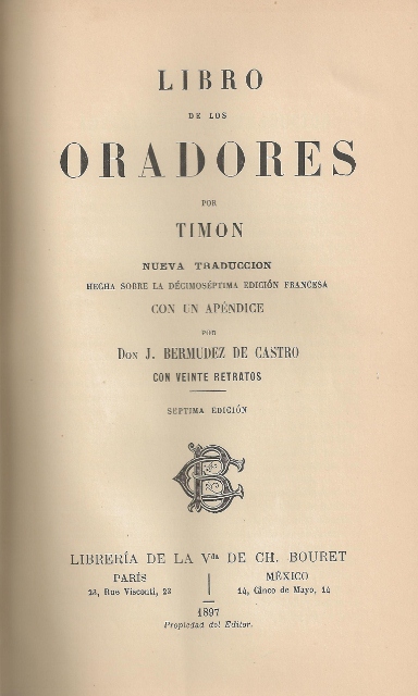 LIBRO DE LOS ORADORES POR TIMON. NUEVA TRADUCCION HECHA SOBRE LA DECIMOSEPTIMA EDICION FRANCESA