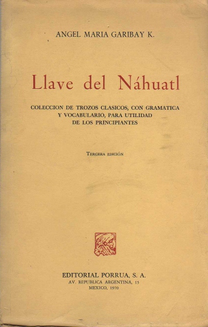 LLAVE DEL NAHUATL. COLECCION DE TROZOS CLASICOS, CON GRAMATICA Y VOCABULARIO, PARA UTILIDAD DE LOS PRINCIPIANTES