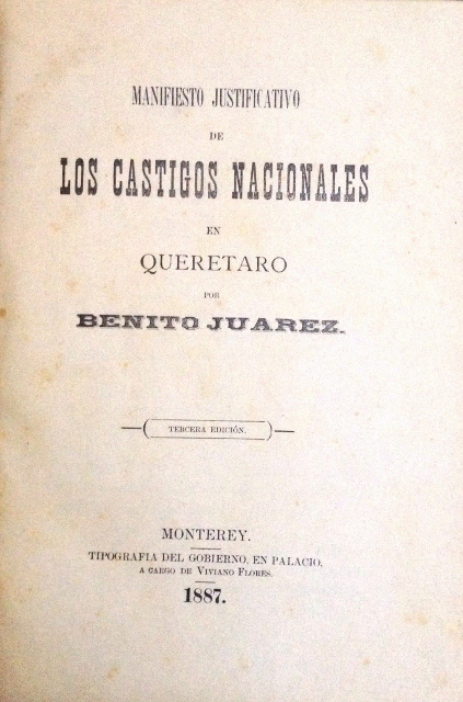 MANIFIESTO JUSTIFICATIVO DE LOS CASTIGOS NACIONALES EN QUERETARO POR BENITO JUAREZ