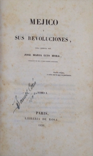 MEJICO Y SUS REVOLUCIONES, OBRA ESCRITA POR JOSE MARIA LUIS MORA, CIUDADANO DE LOS ESTADOS-UNIDOS MEJICANOS. TOMO I