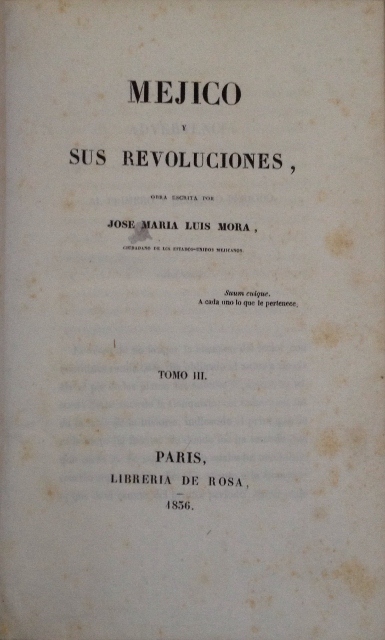 MEJICO Y SUS REVOLUCIONES, OBRA ESCRITA POR JOSE MARIA LUIS MORA, CIUDADANO DE LOS ESTADOS-UNIDOS MEJICANOS. TOMO III