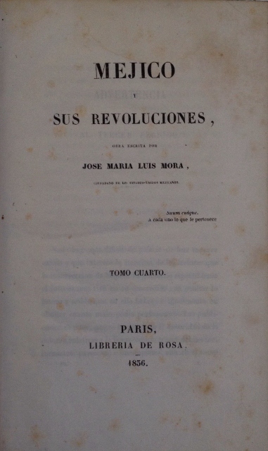 MEJICO Y SUS REVOLUCIONES, OBRA ESCRITA POR JOSE MARIA LUIS MORA, CIUDADANO DE LOS ESTADOS-UNIDOS MEJICANOS. TOMO IV