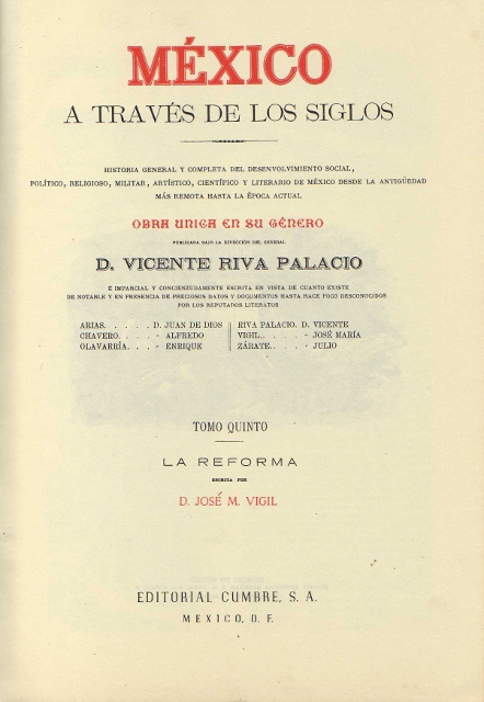 MEXICO A TRAVES DE LOS SIGLOS OBRA UNICA EN SU GENERO. TOMO QUINTO. LA REFORMA