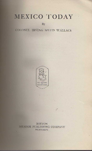AUTOR: SPEED WALLACE (COLONEL IRVING) EDITOR: MEADOR PUBLISHING COMPANU EDICIÓN: S. E. AÑO: 1936 LUGAR: BOSTON, MASSACHUSETTS PAÍS: UNITED STATES OF AMERICA PÁGINAS: 364 PP. TEMARIO: HISTORIA GENERAL DE MEXICO ID: 3868