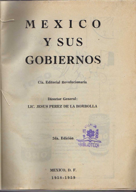 AUTOR: PEREZ DE LA BORBOLLA (JESUS)EDITOR: CIA. EDITIORIAL REVOLUCIONARIAEDICIÓN: SEGUNDA EDICIONAÑO: 1958LUGAR: MEXICO, D. F.PAÍS: S. P.PÁGINAS: 435 PP.TEMARIO: POLITICA INTERIORID: 3328