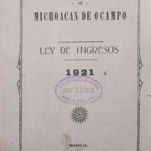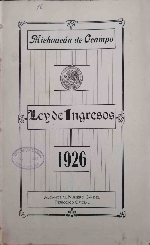MICHOACAN DE OCAMPO. LEY DE INGRESOS 1926. ALCANCE AL NUMERO 34 DEL PERIODICO OFICIAL
