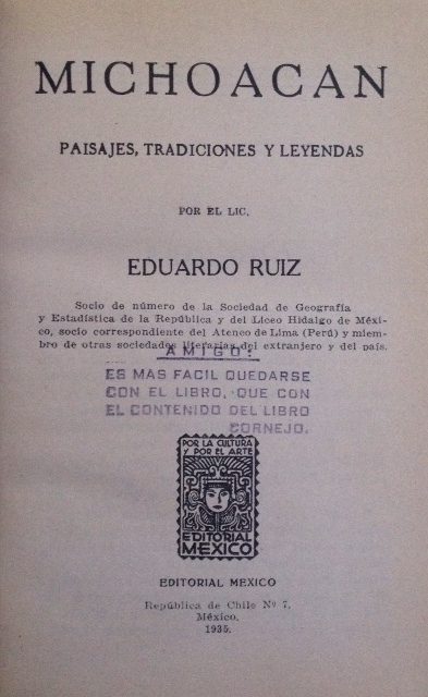 AUTOR: RUIZ (EDUARDO)EDITOR: EDITORIAL MEXICOEDICIÓN: S. E.AÑO: 1935LUGAR: MEXICO D. F.PAÍS: MEXICOPÁGINAS: 441 PP.TEMARIO: MICHOACANID: M206.01