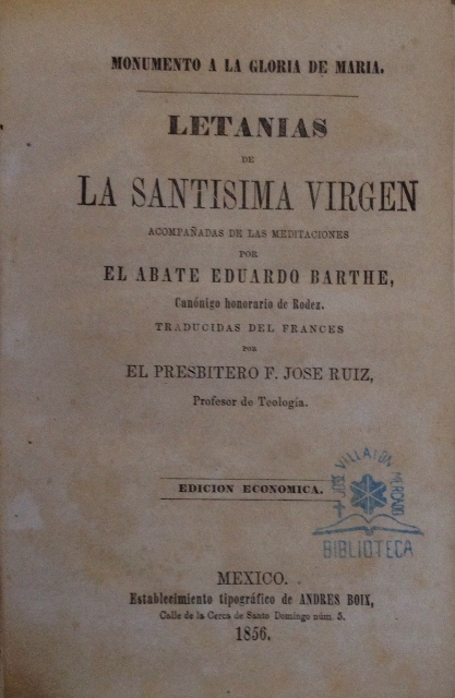 MONUMENTO A LA GLORIA DE MARIA. LETANIAS DE LA SANTISIMA VIRGEN ACOMPAÑADAS DE LAS MEDITACIONES POR EL ABATE ADUARDO BARTE