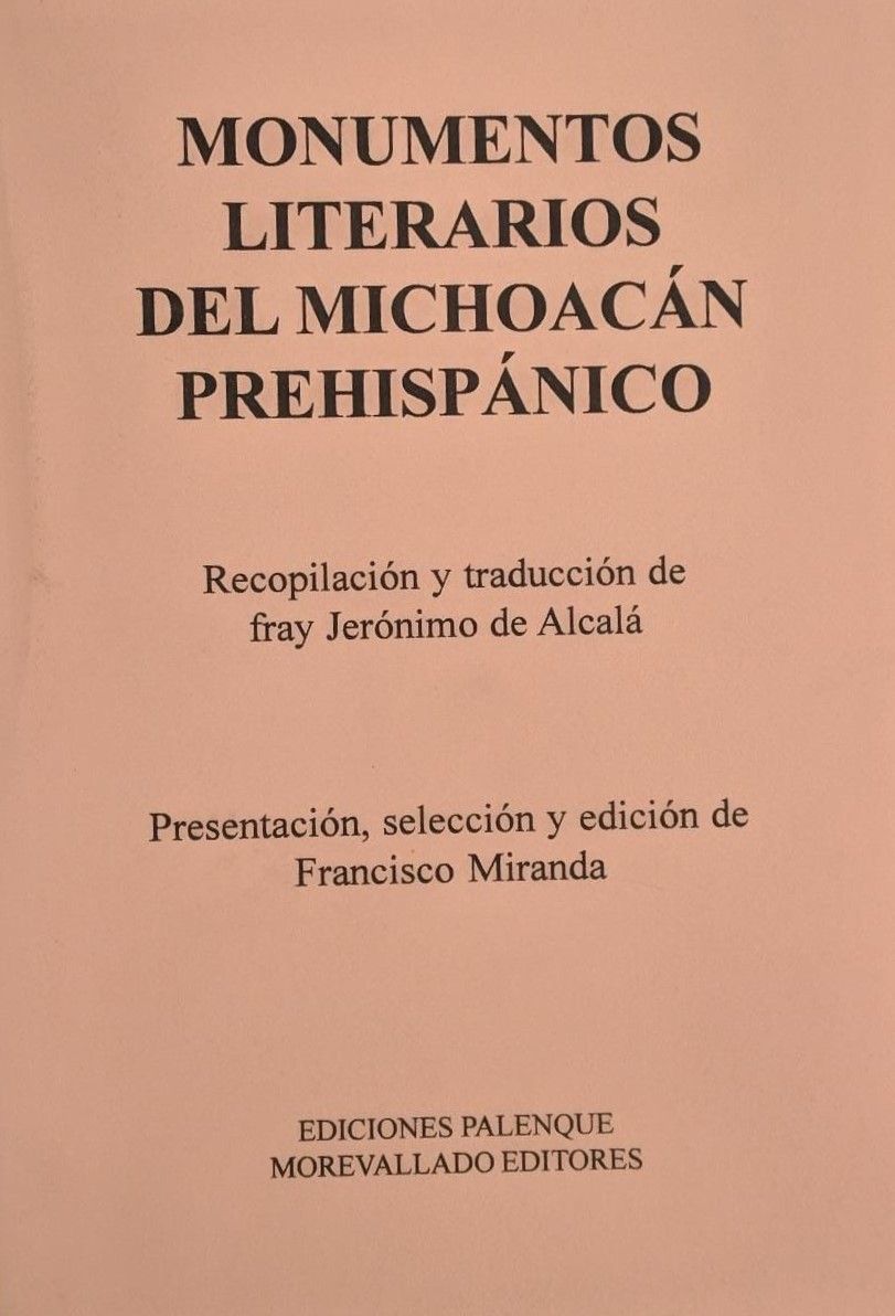 MONUMENTOS LITERARIOS DEL MICHOACAN PREHISPANICO. RECOPILACION Y TRADUCCION DE FRAY JERONIMO DE ALCALA