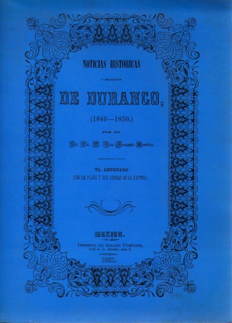 AUTOR: RAMIREZ (JOSE FERNANDO)EDITOR: POTRERILLOS EDITORESEDICIÓN: FACSIMIL DE LA OBRA ORIGINALAÑO: 2001LUGAR: DURANGO, DUR.PAÍS: MEXICOPÁGINAS: 87 PP. MAS INDICETEMARIO: ESTADOSID: 1784