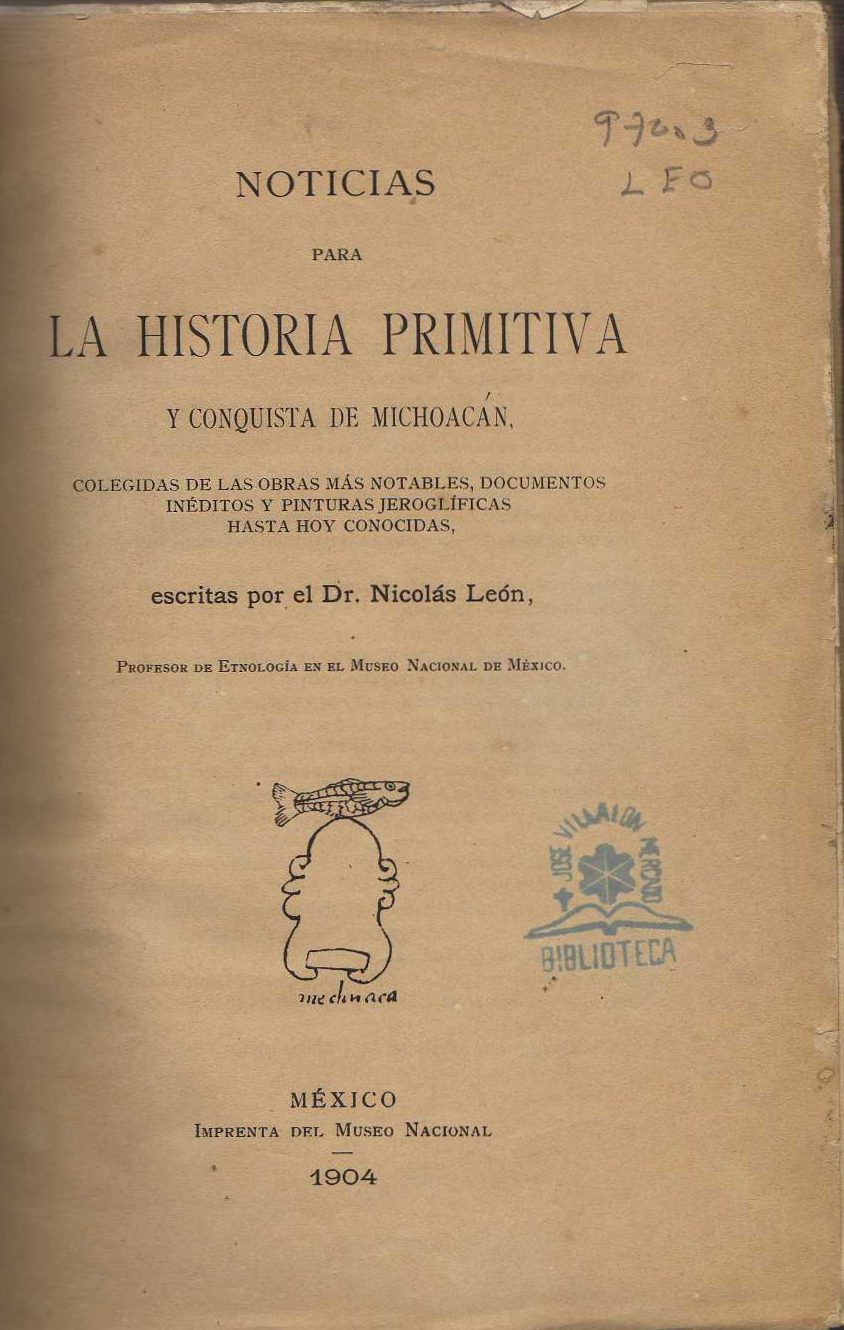 AUTOR: LEON (NICOLAS)EDITOR: IMPRENTA DEL MUSEO NACIONALEDICIÓN: S. E.AÑO: 1904LUGAR: S. L.PAÍS: MEXICOPÁGINAS: 157 PP.TEMARIO: MICHOACANID: M315