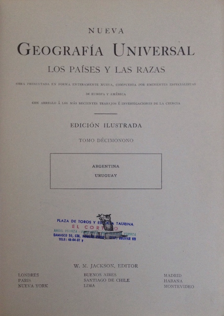 NUEVA GEOGRAFIA UNIVERSAL LOS PAISES Y LAS RAZAS. OBRA PRESENTADA EN FORMA ENTERAMENTE NUEVA, COMPUESTA POR EMINENTES ESPECIALISTAS DE EUROPA Y AMERICA CON ARREGLO A LOS MAS RECIENTES TRABAJOS E INVESTIGACIONES DE LA CIENCIA. TOMO DECIMONONO. ARGENTINA, URUGUAY