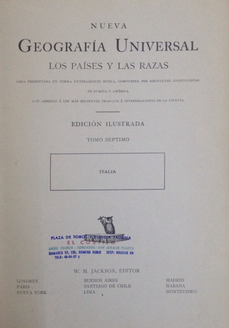 NUEVA GEOGRAFIA UNIVERSAL LOS PAISES Y LAS RAZAS. OBRA PRESENTADA EN FORMA ENTERAMENTE NUEVA, COMPUESTA POR EMINENTES ESPECIALISTAS DE EUROPA Y AMERICA CON ARREGLO A LOS MAS RECIENTES TRABAJOS E INVESTIGACIONES DE LA CIENCIA. TOMO SEPTIMO. ITALIA