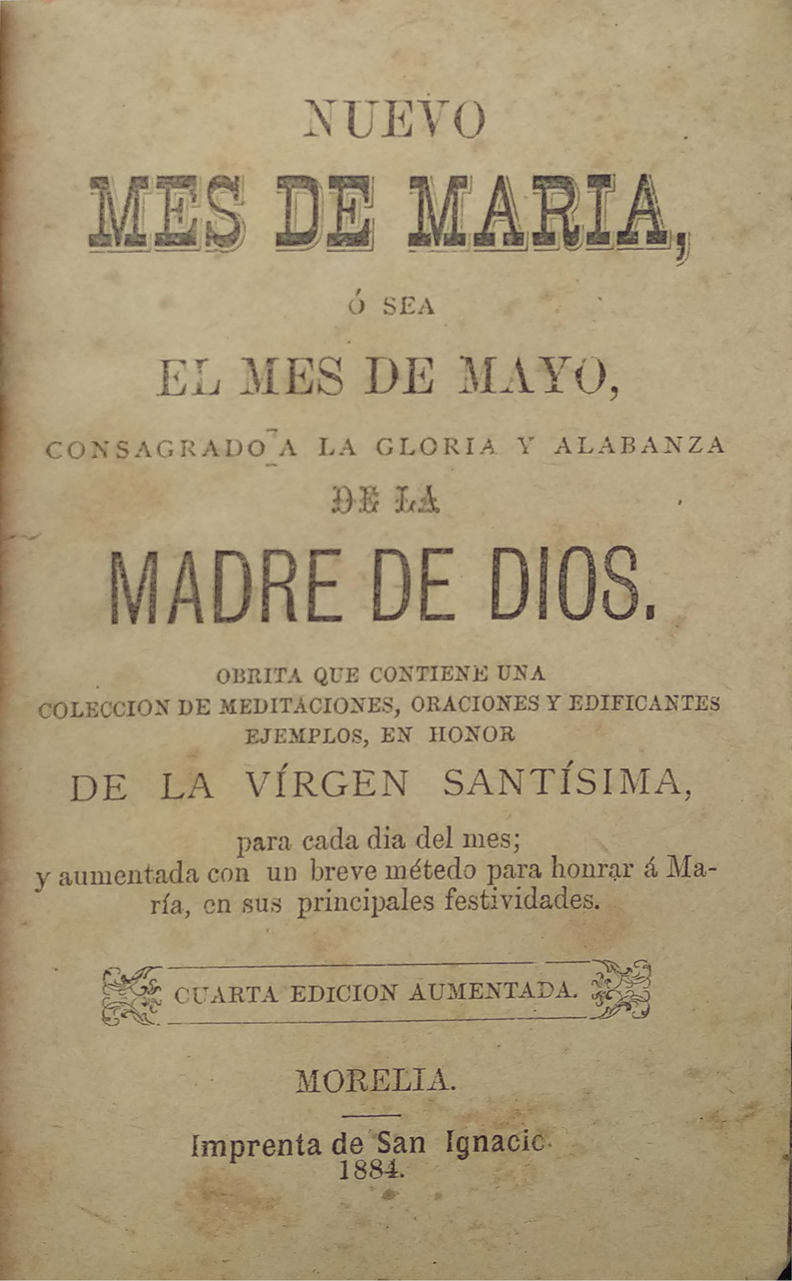NUEVO MES DE MARIA, O SEA EL MES DE MAYO, CONSAGRADO A LA GLORIA Y ALABANZA DE LA MADRE DE DIOS