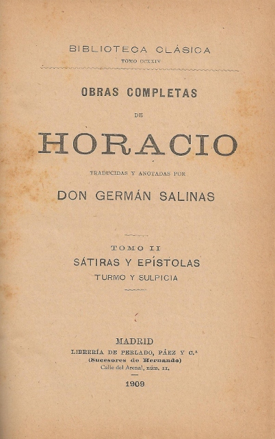 OBRAS COMPLETAS DE HORACIO. TRACIDAS Y ANOTADAS POR D. GERMAN SALINAS. TOMO II SATIRAS Y EPISTOLAS