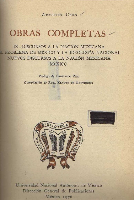 OBRAS COMPLETAS IX. DISCURSO A LA NACION MEXICANA EL PROBLEMA DE MEXICO Y LA IDEOLOGIA NACIONAL NUEVOS DISCURSOS A LA NACION MEXICANA
