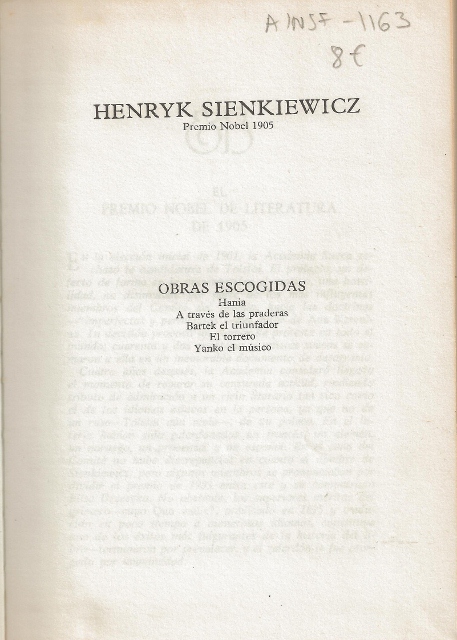 OBRAS ESCOGIDAS. HANIA. A TRAVES DE LAS PRADERAS. BARTEK EL TRIUNFADOR. EL TORRERO. YANKO EL MUSICO