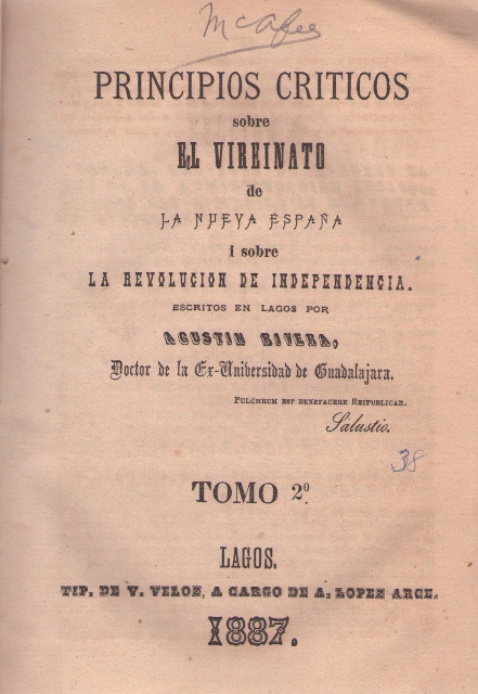PRINCIPIOS CRITICOS SOBRE EL VIRREINATO DE LA NUEVA ESPAÑA I SOBRE LA REVOLUCION DE INDEPENDENCIA. TOMO 2°