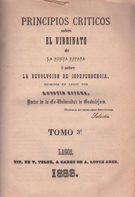 PRINCIPIOS CRITICOS SOBRE EL VIRREINATO DE LA NUEVA ESPAÑA I SOBRE LA REVOLUCION DE INDEPENDENCIA. TOMO 3°