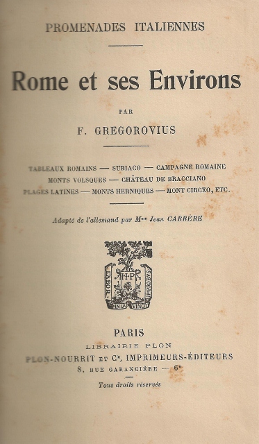 AUTOR: GREGOROVIUS (F.)EDITOR: PLON – NOURRIT ET C.EDICIÓN: S. E.AÑO: S. A.LUGAR: PARISPAÍS: FRANCIAPÁGINAS: 310 PP.TEMARIO: HISTORIA MUNDIALID: 4391
