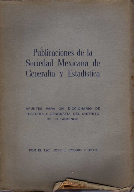 PUBLICACIONES DE LA SOCIEDAD MEXICANA DE GEOGRAFIA Y ESTADISTICA. CUARTO CONGRESO DE HISTORIA. APUNTES PARA UN DICCIONARIO DE HISTORIA Y GEOGRAFIA DEL DISTRITO DE TULANCINGO