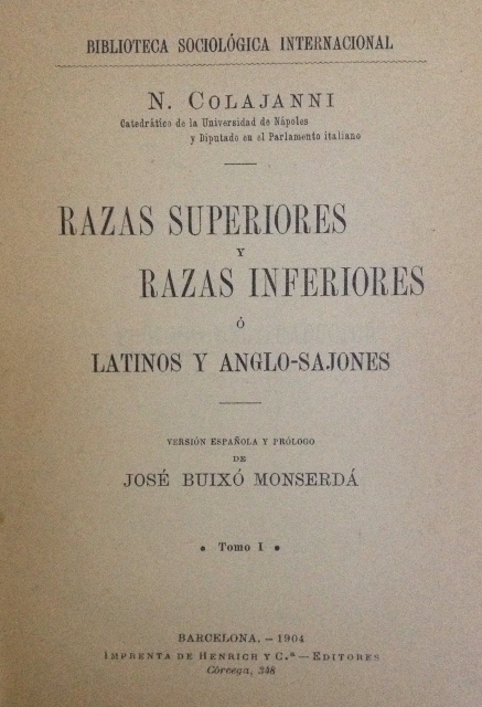 RAZAS SUPERIORES Y RAZAS INFERIORES O LATINOS Y ANGLO-SAJONES. TOMO I