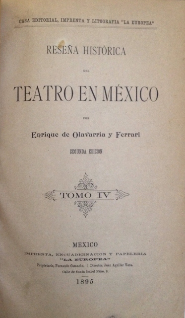 RESEÑA HISTORICA DEL TEATRO EN MEXICO. TOMO IV
