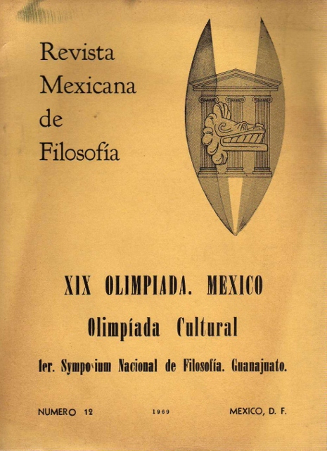 REVISTA MEXICANA DE FILOSOFIA. XIX OLIMPIADA. MEXICO. OLIMPIADA CULTURAL. 1ER SYMPOSIUM NACIONAL DE FILOSOFIA. GUANAJUATO. NUMERO 12.