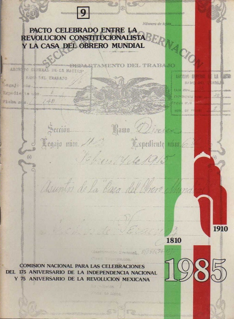 SERIE DE CUADERNOS CONMEMORATIVOS. PACTO CELEBRADO ENTRE LA REVOLUCION CONSTITUCIONALISTA Y LA CASA DEL OBRERO MUNDIAL. 9