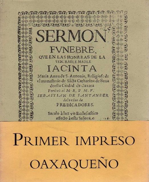 SERMON FUNEBRE, QUE EN LAS HONRRAS DE LA VENERABLE MADRE IACINTA MARIA ANNA DE SANTA CATHARINA DE DE SENA DEESTA CIUDAD DE OAXACA. PRIMER IMPRESO OAXAQUEÑO