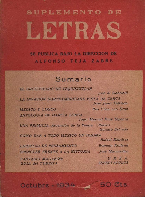 SUPLEMENTO DE LETRAS. SE PUBLICA BAJO LA DIRECCION DE ALFONSO TEJA ZABRE